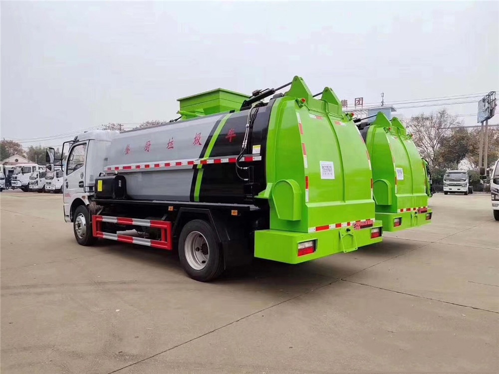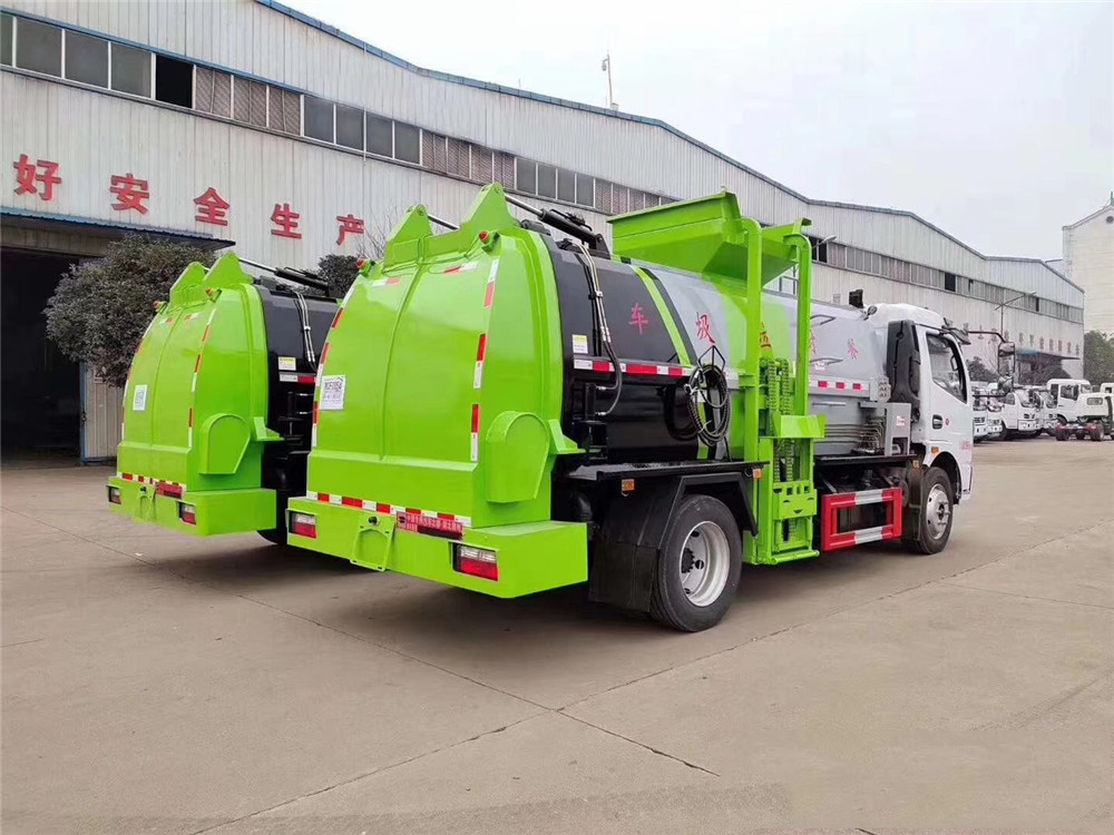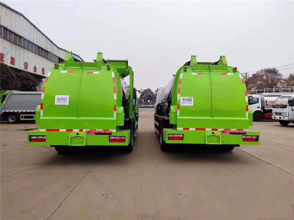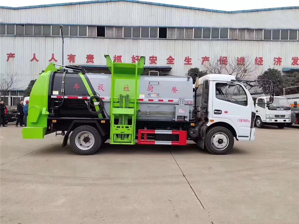 罐體內分上、下兩層,下層為固液分離后污水收集箱,污水箱兩頭高,中間低,最低端設有出水口,以保證污水排放干凈,料口及后門為液壓密封,上料為提升拉桿式,罐體帶舉升自卸功能,讓排泄更徹底干凈。餐廚垃圾車除了單一的運輸、收集外,還可選裝固液分離裝置、吸污功能、罐體清洗功能等。液壓系統由泵、液壓閥和順序閥以及各種功能的液壓油缸、高低壓管路組成。關鍵部件可選用原裝進口,保證產品工作可靠、安全。垃圾投入口與推板之間有足夠距離,推板與罐體內表面設有密封裝置,避免餐廚垃圾投入過程及分離過程中溢到推板后方。