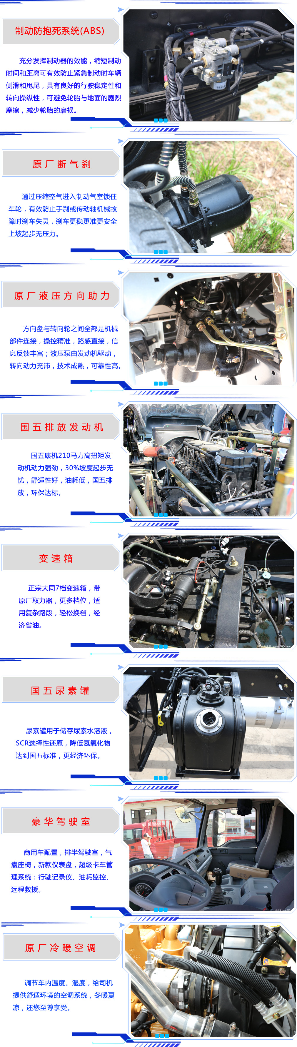 其他 該車適用于危險品運輸,類項號:3;罐體有效容積:24.6立方米, 罐體外形尺寸(長/長軸/短軸)(mm):7900/2450/1750。防護材料:Q235A碳鋼,連接方式:左右側面防護采用焊接連接,后下部防護采用螺栓連接,后部防護斷面尺寸(mm):135×50,后部防護離地高度(mm):435。僅采用底盤子午線輪胎和帶ABS的底盤; 該車前輪安裝盤式制動器,前置排氣管,裝配限速裝置,限速80km/h。安裝帶有衛星定位功能的行駛記錄儀。ABS系統的生產企業:東風電子科技股份有限公司;ABS系統型號:ABS/
