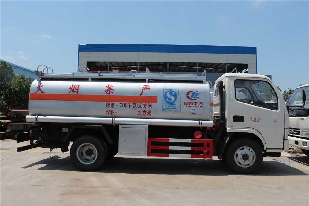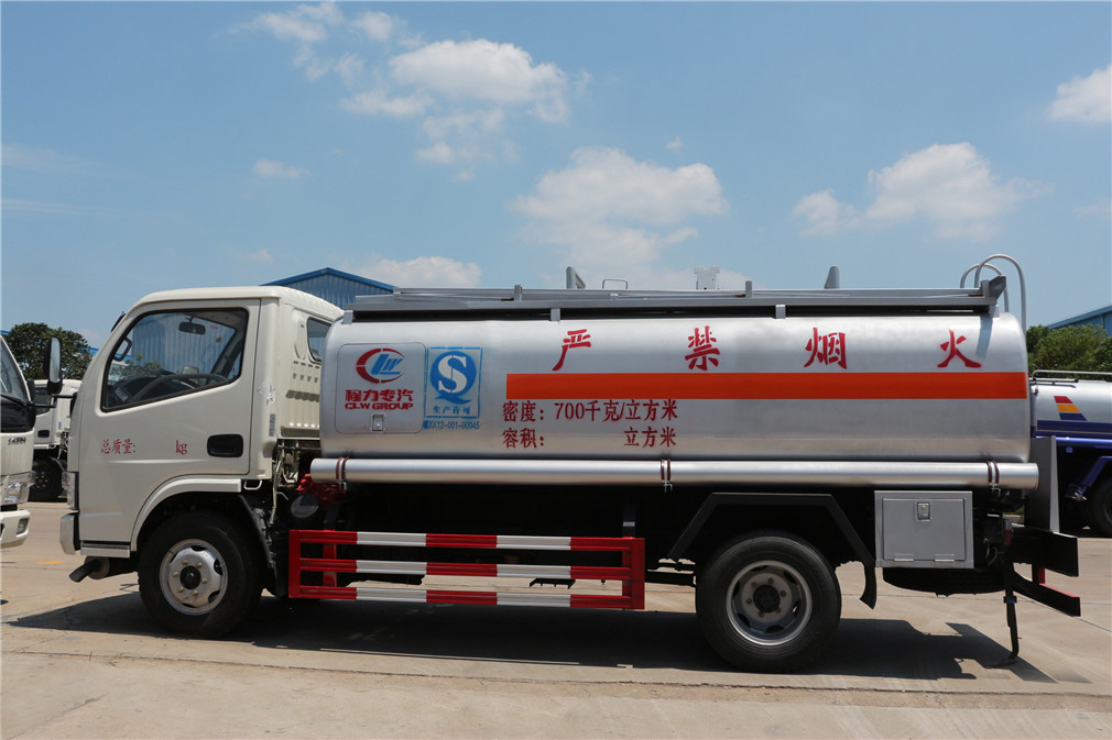其他 1、該車適用于危險品運輸。類項號:3;罐體有效容積:5.09立方米,罐體外形尺寸 (長×寬×高) (mm):4000×1750×1150(罐體前部900mm的位置安裝加油機,當加油機裝置選裝下掛式時,右側防護由工具箱代替,且罐體尺寸為4000mm×1700 mm×1100 mm)。2、該車可裝配;恒和嘉華牌 ,伯萊牌,正星牌,恒山牌,華特牌數控加油機,其型號對應為: SKES-1112,SKDS-2001A,SC20D1110F,HS1812B,HT-YV60E,對應生產廠家為:恒和嘉華科技有限公司 ,上海伯萊機械有限公司,正星科技有限公司,托肯恒山科技(廣州)有限公司,隨州市華特專用設備有限公司。3、車輛顏色和文字噴涂位置可變化。4、防護材料:Q235A碳鋼,連接方式:左右側面及后下部防護均采用焊接連接,后部防護斷面尺寸(mm):200×50,后部防護離地高度(mm):530。5、隨底盤選裝駕駛室,僅選用裝子午胎型號(7.00R16LT 14PR),限速裝置,輔助制動裝置和前盤制動器的底盤;該車應裝具有衛星定位功能的行駛記錄儀。6、ABS廠家及型號:襄陽東風隆誠機械有限責任公司/ABS/ASR-24V-4S/4M。7、危險貨物運輸車輛的車輛類型(FL型車輛)。