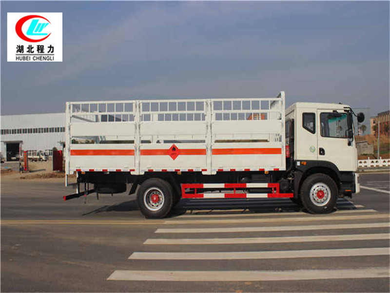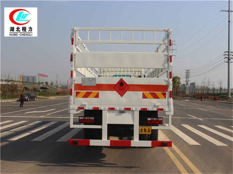 其他 該車適用于危險品運輸。隨底盤選裝駕駛室.前面罩,前組合燈具.廂體選裝無柵欄.運輸具有獨立罐(瓶)容器包裝的易燃氣體:液化石油氣,壓縮天然氣,乙炔,乙烷,丁烷,丁烯,丙烯.甲烷.二甲醚,壓縮氫.類項號2.1,運輸具有獨立容器包裝的非易燃無毒氣體:二氧化碳,壓縮氧. 壓縮空氣(氮,氦,氬,氖),類項號2.2,該車運輸的氣瓶盛裝介質2.1項易燃氣體時,車輛左、右側及后部粘貼“易燃氣體”標示牌,該車運輸的氣瓶中盛裝介質2.2項非易燃無毒氣體時,車輛左、右側及后部粘貼“不燃氣體”標示牌.廂體顏色可變化.側面及后下部
