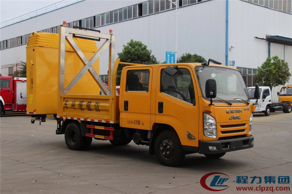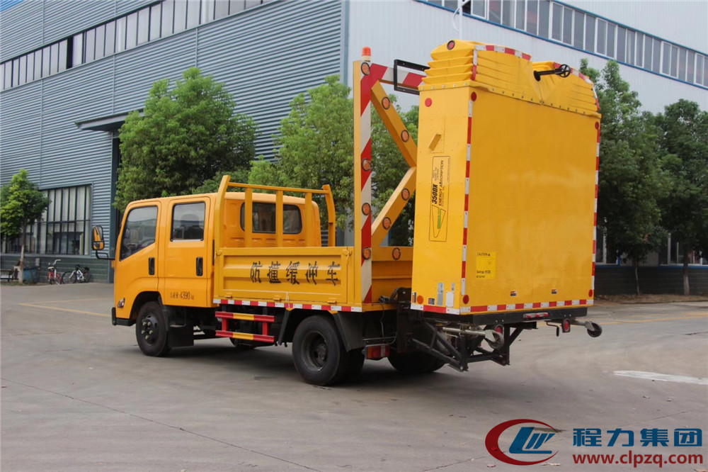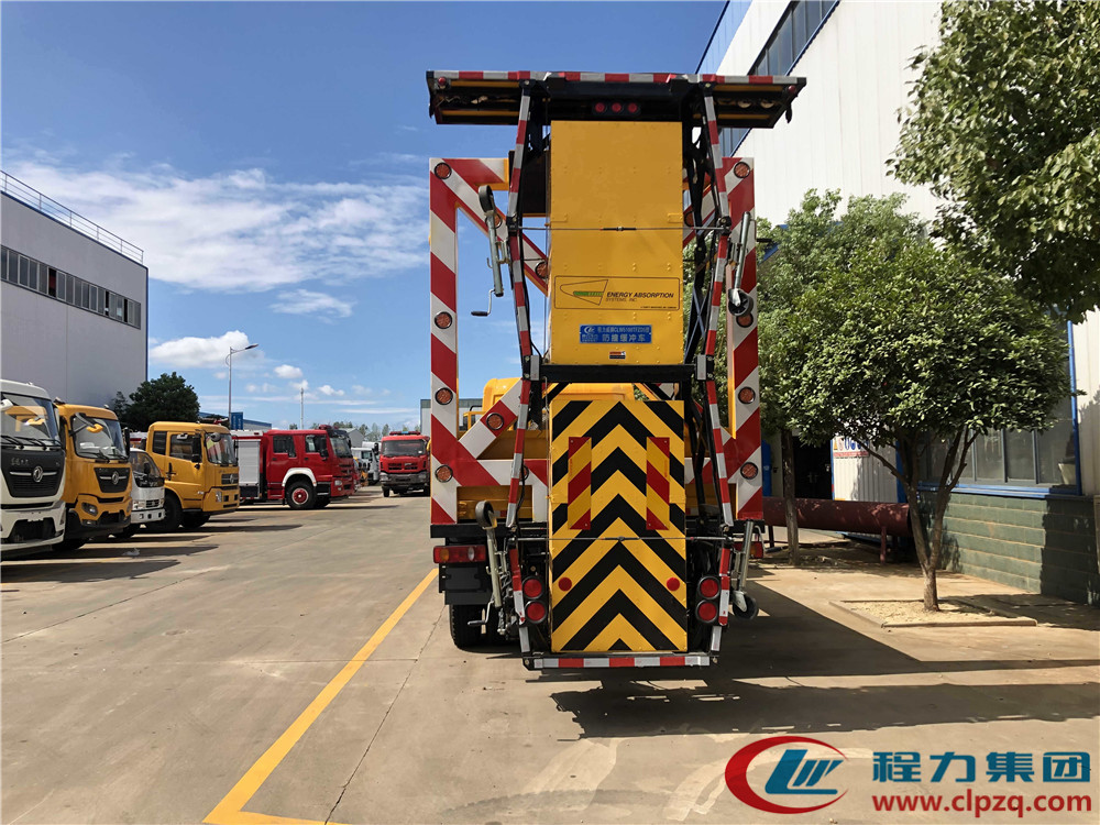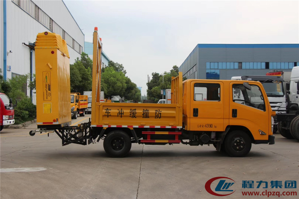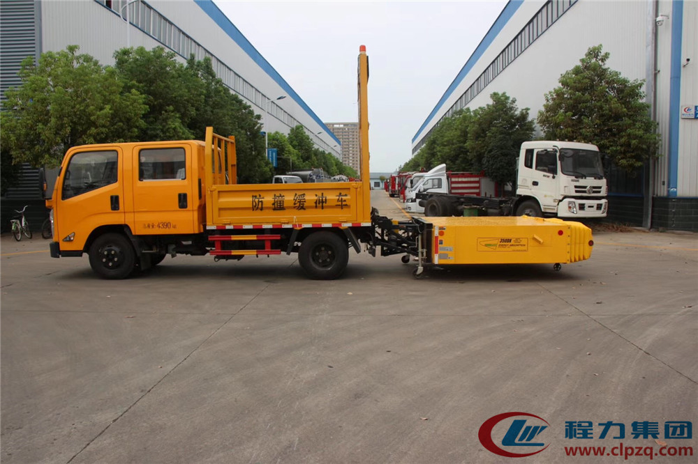 • 防撞緩沖車是一輛車后裝有防撞緩沖墊的卡車,把它停在施工區域的后方,如果有車輛沒看到施工區域追撞過來,那么防撞緩沖車的緩沖墊就可以吸收撞擊能量,保障前方施工人員的安全。