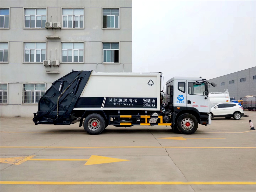 • 壓縮式垃圾車采用機電液一體化技術,借助機電液聯合自動控制系統,通過車廂、填裝器和推鏟等專用裝置,實現垃圾倒入、壓碎或壓扁、強力裝填,把垃圾擠入車廂并壓實和推卸。其主要特點是垃圾收集方式簡便、高效、具有自動反復壓縮以及蠕動壓縮功能,壓縮比高,裝載質量大,作業自動化,動力性、環保性好,整車利用效率高。